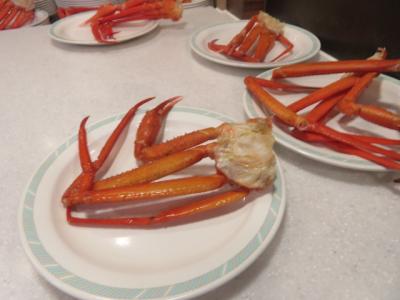 食事は夕食・朝食とも食事会場でバイキング、カニの食べ放題がウリです、たくさん食べている人多かったです、カニの質はそれなりです、料理の種類は多かったので腹いっぱい食べました、お正月に宿泊したのでお節料理もありました、ソフトドリンクも飲み放題、ほぼ満足しました。- 旅行時期