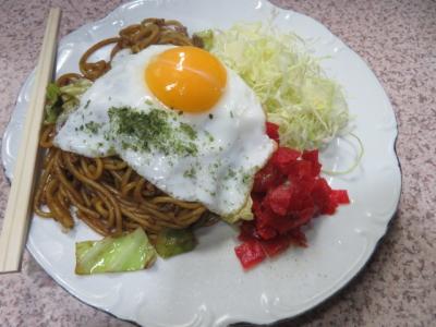 JR横手駅を出るとすぐ県道31号線に、左に行くとややの看板がありました、お店は居酒屋風でカウンター席がありました、肉玉やきそばの名物・横手やきそば(550円)を食べました、キャベツと福神漬けがついていてます、目玉焼きを混ぜて美味しく食べました、サービスできんぴらごぼうを食べることも出来ました。
