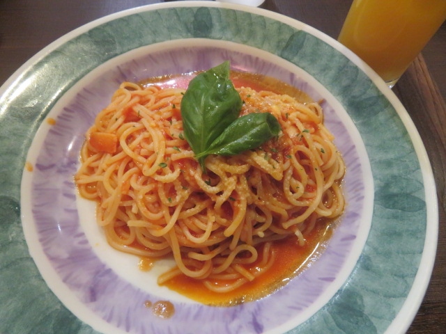 国道17号線沿いにあるショッピングモールのスマーク伊勢崎1階飲食店街にあるチェーンのパスタ店、昼時店内が広いので入りました、生麺・生パスタが売りの店です、サラダとのセット(990円)がお得なの選びました、フレッシュバジルを食べました、連れはベーコンシメジにしました、美味しく食べることが出来ました。