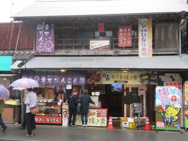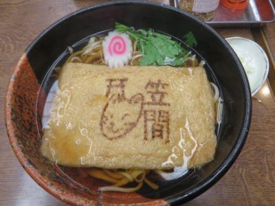 笠間稲荷神社鳥居前の道、門前通り沿いにある蕎麦屋さんです、歴史ある老舗のお店です、気さくなおばさんが対応してくれました、店内には多くの参拝者が来ていました、最近NHKのテレビで紹介されたようです、稲荷そば(きつねそば)を食べました、笠間の文字ときつねの絵が入った大きな油揚げが入っています、味はごく普通でした、稲荷ずしのテイクアウトもありました。
