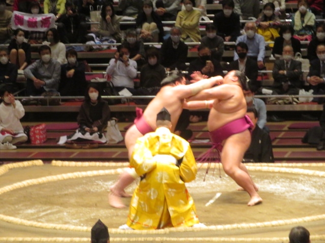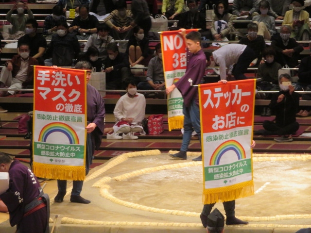 両国国技館で大相撲11月場所を観戦しました、本来九州場所ですが感染症対策で両国で行われました、今回はマス席Cを利用しました、9月場所はマス席は4人定員が一人でしたが11月場所から2人での利用となりました、マス席、4人ではきついですが2人ですとゆっくり観戦出来ました、今回も飲食はできませんでした、弓取り式が終わってから土俵を利用して抽選会が行われました、帰る人がいっぺんに出ないよう工夫したようです、各面5人合計20人にグッズや色紙が当たるようです、私ははずれましたが裏にいた人は当たりました、ゆっくり楽しむことが出来ました。
