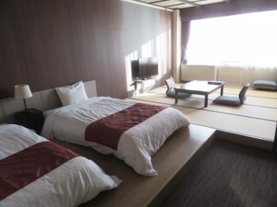 函館にある湯の川温泉の海岸沿いにある温泉リゾートホテル、湯の川温泉の中心からちょっと離れていて静かな場所にあります、部屋はソレイユ館の6階で、オーシャンビューでした、ゆとりある広さでした。
