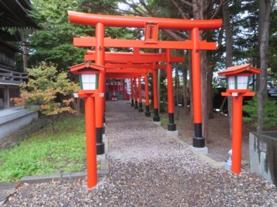 湯の川温泉から近い市電の湯の川電停そばの高台にあります、階段を登ると社殿があります、今から560年前一人の木こりが湯を発見、その湯で病気が治ったので薬師如来を安置したのが神社の始まりのようです、そのため境内には湯の川温泉発祥の地の碑があります、御祭神は大己貴神・少彦名神・倉稲魂神で境内には豊受稲荷神社・日吉神社、樹齢約220年の大銀杏があります、なでうさぎや開運小槌もありました、社務所があり御朱印を受けることも出来ます。