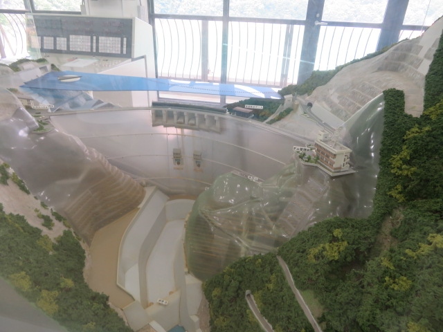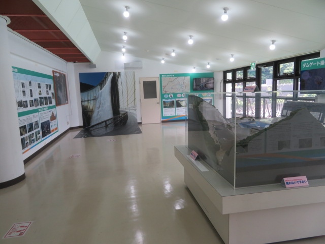 国道121号線から県道23号線を川俣方面に入ってトンネルを抜けると昭和41年に完成したアーチ式のコンクリートダム・川治ダムがあり、そこに3階建ての資料館があります、1階に売店と軽食が取れる食堂があり、2階と3階が資料館になっています、写真とパネル、模型でダムと周辺を紹介しています、資料は少ないのですぐ見終わりました、建物内からダム湖を眺めることが出来ました、トイレとダム展望台は道路を渡るとあります。