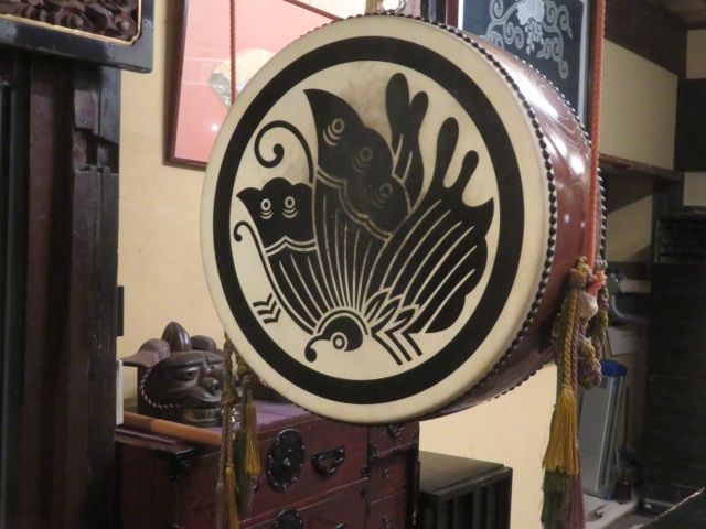 日光市の湯西川温泉にある老舗温泉旅館、湯西川温泉街の中心にありました、趣がある昭和の懐かしさが漂う木造建築の本館に泊まりました、最初に太鼓でのお出迎えがありました。