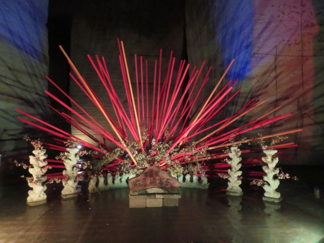 広い採掘場跡はとても涼しく、夏は快適です、散策しながら見ました、華道家の假屋崎省吾の作品が展示されていました、大谷石の歴史を知ることが出来ました。- 旅行時期