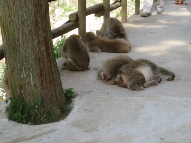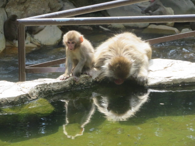 湯田中渋温泉郷の上林温泉から歩いて行きます、30分程歩きます、又は有料の渋温泉地獄谷駐車場から横湯川沿いを15分程歩いて行くことも出来ます、800円の入園料を支払って苑内に入ると猿が多くいました。