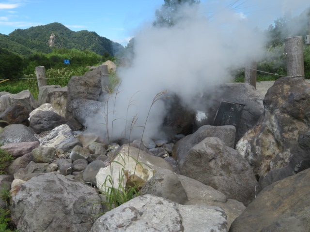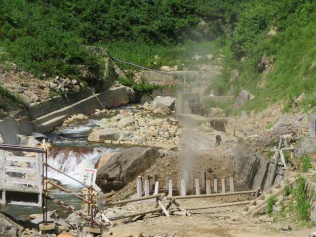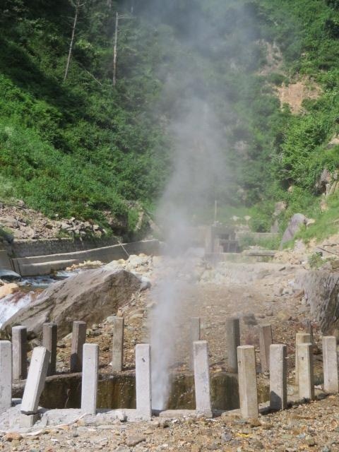 国道292号線沿いのほたる温泉・熊の湯温泉がある場所にあります、道路を走行していると蒸気が噴出しているのですぐわかります、今回車を停めて見ることにしました、車は数台しか停められません、迫力ある蒸気を見ました、硫黄の匂いもあります、ほたる温泉の源泉なので近くで初夏には蛍を見ることができます、道路沿いで見たこともあります。
