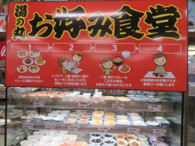 上信越道の湯の丸サービスエリア下り線のフードコートにあります、並んでいる料理をお盆にのせてレジで会計です、ご飯・みそ汁などは会計が終わってから、ご飯は自分でよそります、煮物、焼き魚、サラダ、豆腐、おろし、揚げ物など多数並んでいます、100円位からありますの安く食べることもできます、日本各地や台湾にあるまいどおおきに食堂や半田屋と同じシステムです。好きな物が好きなだけ食べられるのがうれしいです。