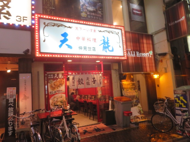 創業50年の中華料理店天龍の仲見世店です、川崎駅東口からすぐの仲見世通りにあります、カウンター席があるので一人でも気軽に入れました、チャーハンと餃子を食べました、味は普通でした、餃子が普通は6個ですが半分の3個で値段も半額でしたので食べることにしました、日替わりランチが700円位からあります、夜は飲酒をする人が多いようです。