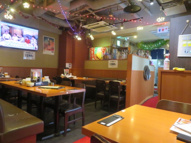 池袋東口のビル地下1階にある中華料理の居酒屋、駅や明治通りからすぐの飲食店が多い場所にあります、便利な24時間営業のお店、全体的の料理・飲み物が安く、座席にゆとりがあります、今回ランチタイムに行きました、780円で麻婆豆腐定食を食べました、味は良かったです、ドリンクはセットで100円でした、中華の料理は111円、333円、555円と安いです。