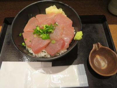 相鉄線の海老名駅改札口を出てすぐあります、券売機を利用して食券を買って注文します、まぐろ中心の食事処です、ランチタイムにまぐろ丼(580円)を食べました、人が少なかったのですぐ出来ました、味は普通でした、朝はおにぎりを食べることが出来ます、おむすびセット(400円)が人気のようです、夜は立ち飲み屋になります、駅構内なので便利です。