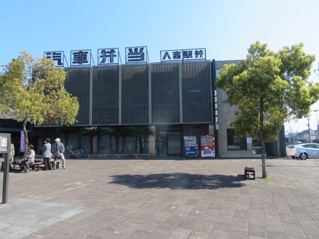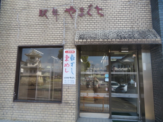 人吉駅前にあります、駅を出ると左側にあるビルがやまぐちです、店内に入ると栗めし(1200円)、鮎すし(1200円)を中心にお弁当やおかずが並んでいます、駅利用者とは別に車で買いに来る人も多いです、私は人気の駅弁栗めしを買いました、栗の形をしたプラスチック製の容器に栗が5個、蓮、海老、吹き、こんにゃく、ちくわ、玉子などが入っていました、美味しく食べることが出来ました。