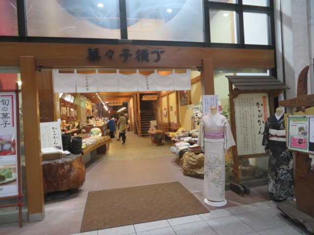 天文館の本通りアーケードにある薩摩蒸気屋、木造家屋を利用した細長い菓々子横丁、鹿児島のお菓子が並んでいます、人気のカスタードクリームを使ったかすたどん、人気の焼きどうなつ、鹿児島の伝統的な蒸し菓子かるかんなど多種類のお菓子がありました、私は鹿児島らしいかるかんを買いました、店内には休憩が出来る場所もありゆっくりお土産を買うことが出来ます。