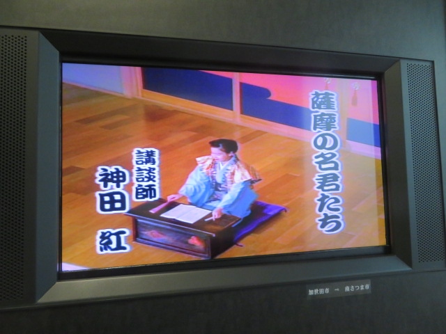 大久保利通銅像を見てから甲突川沿いの遊歩道を歩いて館内に入館いました、入館料は300円です、鹿児島が生んだ西郷隆盛や大久保利通など維新の偉人達のことが映像によって紹介されていました、映像のコーナーが何か所もあるので時間を要しました、講談による紹介もありました、1階と地下1階にある再現された展示物や写真を見て勉強になりました、行った時には維新体感ホールは入れませんでした。