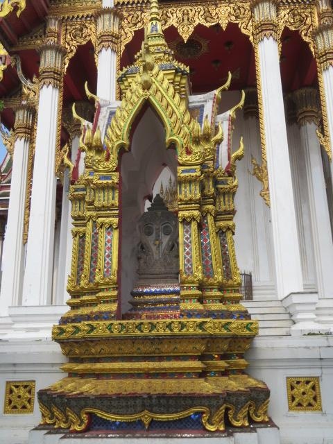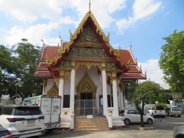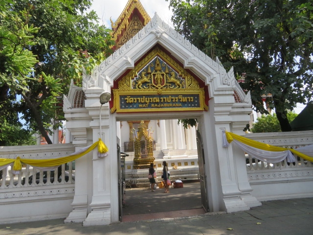 チャオプラヤ川に近い場所にあります、市場を見た後寄りました、1424年8代目の王が継承争いで死んだ二人の兄たちの為に建立した寺院です、境内に1933年に建てられた金閣寺を模した日本人物故者納骨堂があります、1895年以来タイでなくなった日本人が祀られています、堂内には入れなかったの外で手を合わせて帰りました。