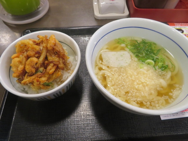 JR総武本線・東京メトロ東西線の西船橋駅前の便利な場所にあるチェーン店のなか卯です、昼時に行ったのでお得なワンコイン・500円で食べることが出来るランチセットを食べました、はいからうどん(たぬきうどん)とかき揚げ丼のミニ丼がセットを食べました、味も量も私にはよかったです、安く早く食べることができほぼ満足でした。