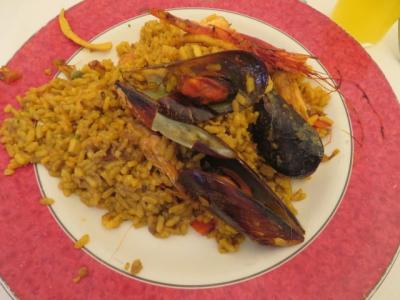 皆でシーフードパエリア、ムール貝が入ったピラフやサラダを食べて楽しみました、日本人ツアーの人が多くいました。- 旅行時期