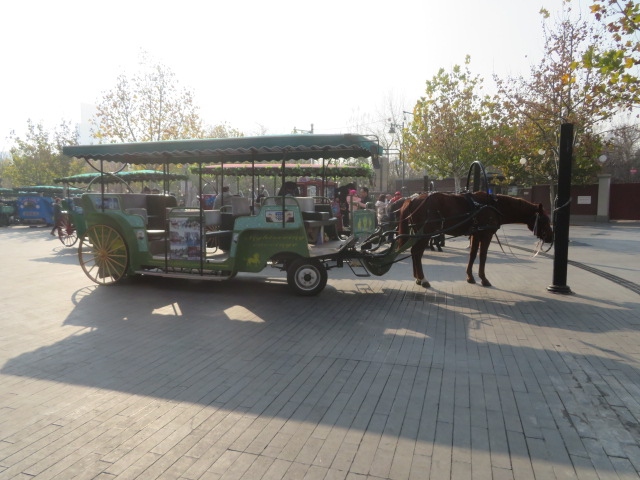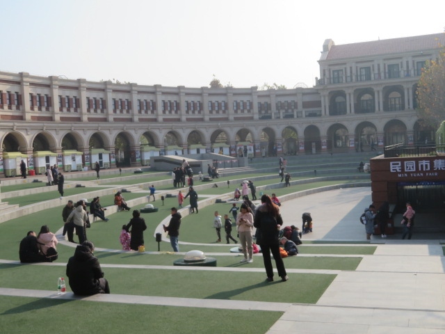 解放北路から五大道へ行きました、五大道には成都道、重慶道、常徳道、大理道、睦南道、馬場道がありますが、今回は重慶道を歩いて五大道中心にある民園広場に行きました、インホメーション(旅客中心)とその2階にある五大道歴史博物館に入館しました、食事も広場に隣接した食堂でしました、道沿いには西洋建築の建物が多くあり見ながら歩くことが出来ます、又、広場付近には観光馬車が発着しているので乗ることが出来ます、土休日には多くの人が歩いています。