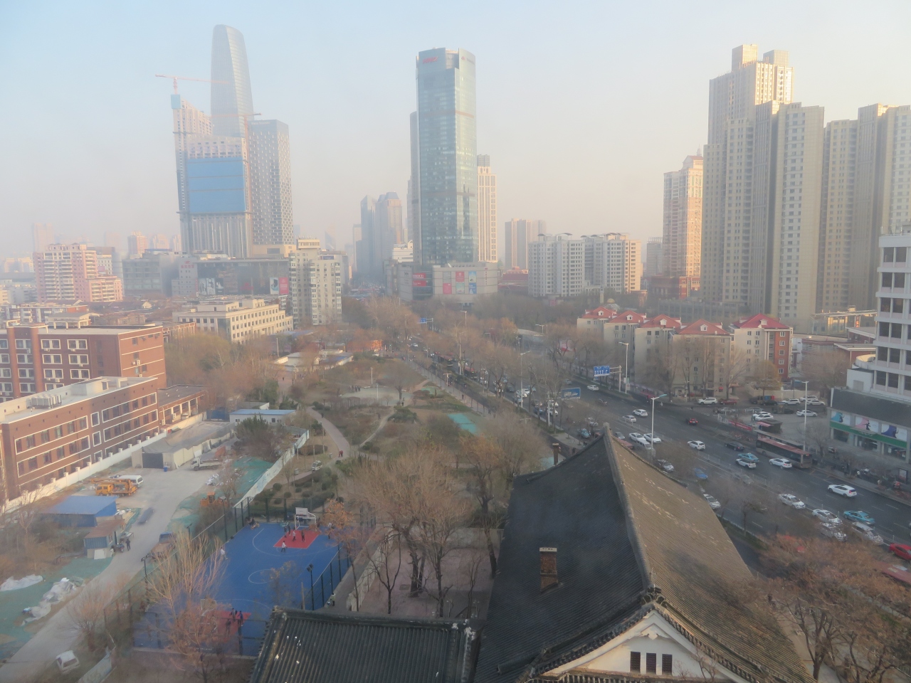 天津市街の中心にあります、地下鉄1号線鞍山道駅から歩いて5分位の南京路沿いにあります、近くに繁華街の浜江道や天津伊勢丹、カルフールがあります、コンビニ、飲食店は近くに多くありますので便利、客室・浴室は広く快適でした、眺めも良かったです、朝食も料理の品数がある程度あり満足でした、料金は比較的安いです。