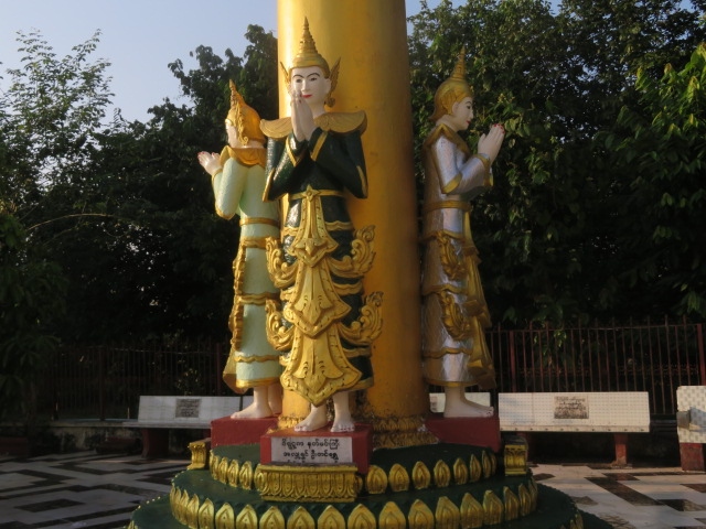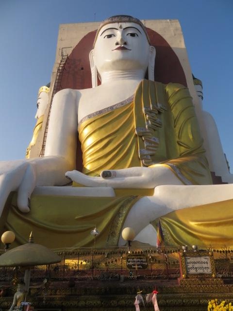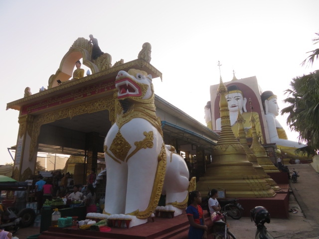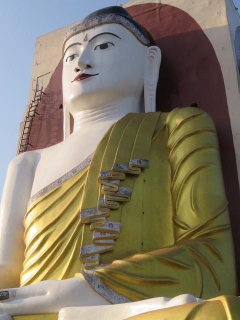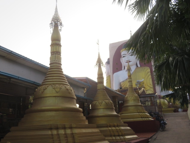 古都バゴー市街にあります、1476年にモン族が建立したと言われています、高さが30mあり太い柱4面に座仏があります、一部修復された仏像もあります、それぞれを見ながら一周しました、小さな仏像もいくつかありますので見ると面白いです、大きな仏像の唇には真っ赤な口紅が塗られています、大きな爪にもネールが描かれていておしゃれな仏様だなと感じました。