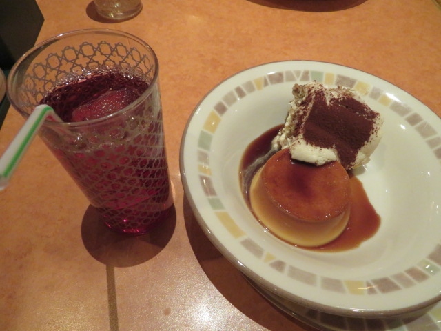 近くにある居酒屋で飲食をした後、仲間と寄りました、飯田橋駅近くの神楽坂通り沿いの地下にあるサイゼリヤです、20時頃ですが人は結構いました、食事がすんでいるのでそれぞれがデザートや飲物を注文、私はプリンとティラミスクラシコの盛合わせ(499円)とドリンクバー(190円)を注文しました、ティラミスはふわっとしていて美味しかったです、1時間位くつろぎました。