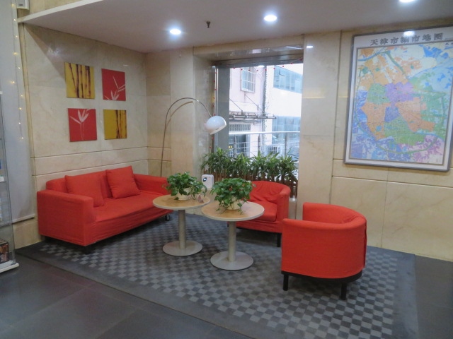 天津を観光する為2泊しました、地下鉄9号線の大王庄駅から歩いて6分位です、六経路沿いにあり建物が高層なのですぐわかりました、フロントは1階でスタッフは普通の対応、英語と中国語のみでの対応です、客室はゆとりがありました、ミネラルウォーター2本とコーヒー・紅茶がありポットを利用して飲めます、冷蔵庫はありません、客室からの眺めは良かったです、安いホテルにしてはスリッパが良かったです、朝食はそれなりでした、ホテルの前に市場がありました、ホテルから天津駅、解放北路が近いので便利でした。