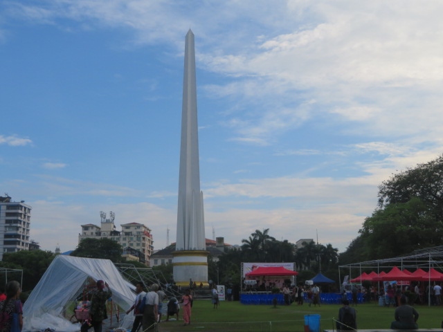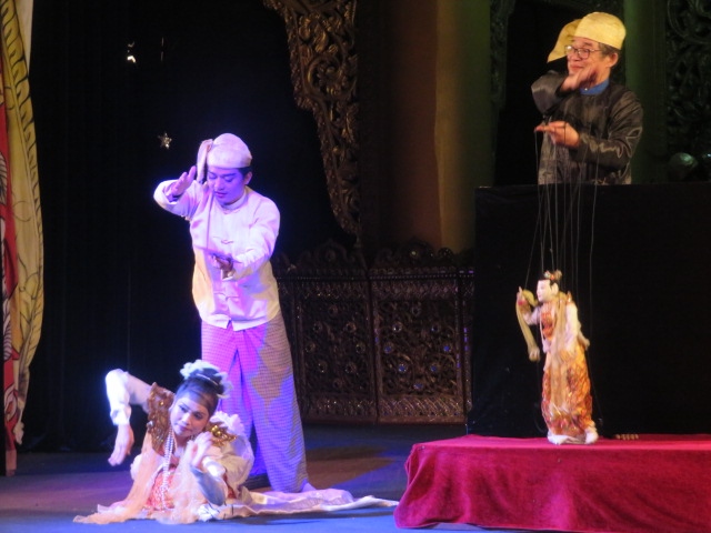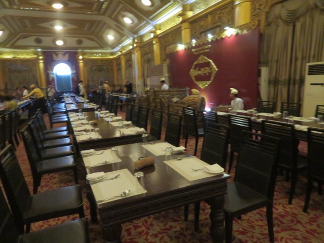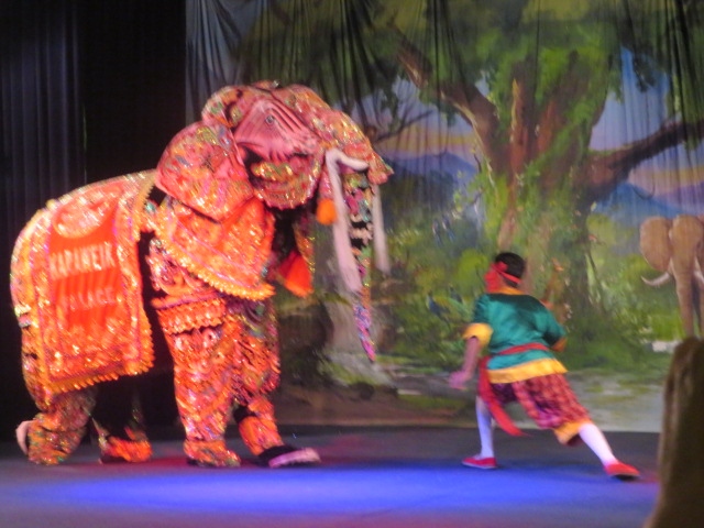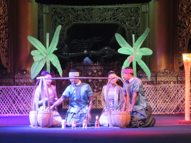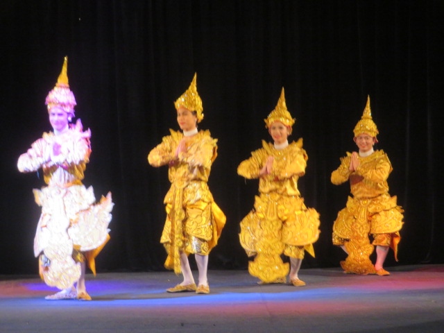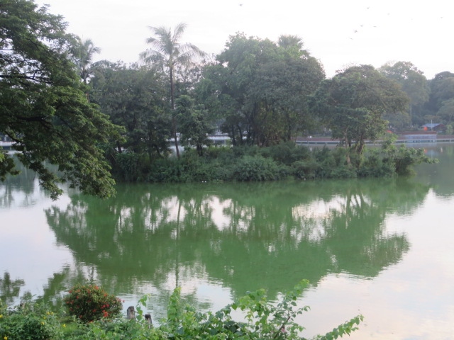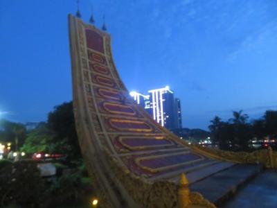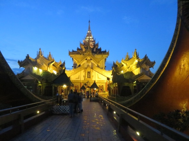 ヤンゴン市街の北約1㎞の場所にあるカンドーチ湖に浮かぶ黄金の鳥をかたどったレストラン・カラウェイパレスに行きました、早めに着いたので湖畔にある公園を散策してから入りました、ミャンマー料理主体でインターナショナル料理もあるバイキングのレストランで広いです、ここではミャンマーの民族舞踊鑑賞を見ながら食事が出来ます、ステージではいろいろな場面の踊りや人が入った象の踊り、あやつりなど演出されていて見て楽しみました。