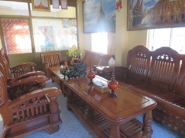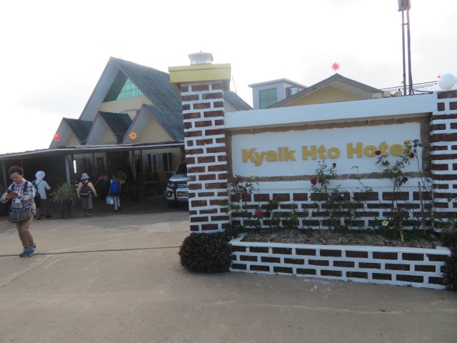 キンプンからトラックの荷台に乗ってゴールデンロックの参道入口に到着して参道を歩くと右側にあるホテルでゴールデンロックに最も近い宿泊施設です、日本のツアーで良く利用されています、今回道を挟んで隣にあるチャイトーホテルに宿泊して食事で利用しました、そこそこ綺麗で美味しく食べることが出来ました。