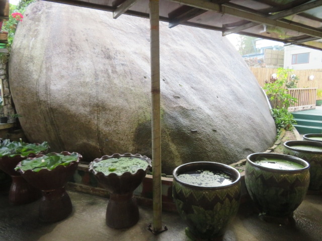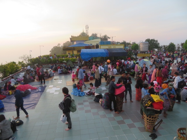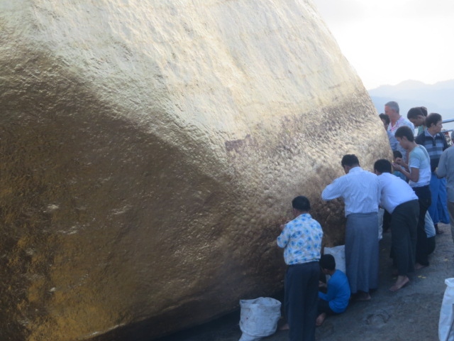 今年の2月に修復工事が終わったので綺麗になっていました、夕方も夜も朝も参拝者が多く来ていて賑やかでした、参拝者目当ての屋台やお土産屋が多くあり夜までやっていました、朝は僧侶の托鉢も見ることが出来ました、今回男性陣は岩に願い込めて金箔を貼ってきました。- 旅行時期
