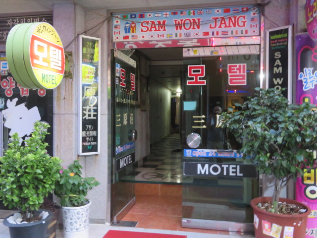 チャガルチにあります、チャガルチ市場や地下鉄チャガルチ駅に近い焼肉店などが並ぶ狭い道沿いにあります、周辺に飲食店やコンビニが多くあり食事買物に不自由しません、昔からあるモーテルで建物は古いです、部屋の広さは普通でシャワーのみ、部屋には無料のミネラルウォーター2本、缶ジュース2本がありました、便利な場所で3000円以内で安く泊まれて満足でした。