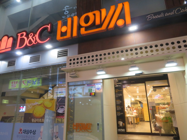 釜山市内で見かける人気あるベーカリーショップ、以前は釜山駅構内の店で買ったことがあり良かったので今回は南浦洞のお店を利用しました、ビルの1階にある店内には多くの種類のパンやケーキが並んでいました、宿での夜食と朝食で食べました、コンビニのパンよりおいしいので良かったです、また、利用したいです。