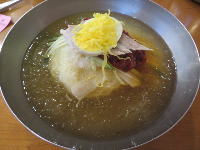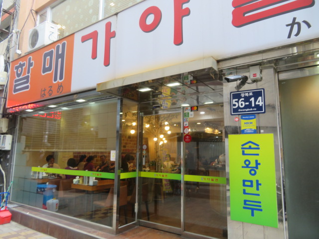 南浦洞の狭い飲食店が並ぶ中にありました、周辺に多くのミルミョンや焼肉を食べさせるお店が多くあり何処に行こうか悩んでいましたが友人が以前2回程行ったハルメカヤミルミョンで名物の冷麺・ミルミョンを食べることにしました。