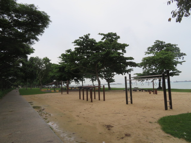 MRTパヤレバー駅前から路線バスを利用してマリーンパレードロード沿いまで行き歩いて海岸まで出ました、公園は細長くて広い公園、整備された散策路やサイクリングが出来るロードがあります、池があり水上スキーのようなスポーツをしている人がいました、公園内には何軒もカフェやシーフードレストランがあります、海を見ながら食事が出来ます、私は食事はしませんでしたがジュースを飲みました、帰りも路線バスを利用してMRT南北線のベドック駅前に出ました。