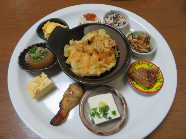 本田町の住宅街にある和食主体の食事処で静かでのんびり出来るようです、和室を利用して食べました、ランチメニュー1050円のコースを食べました、10種類の懐石風の料理と食後のデザートでした、他に1550円のコースもあります、普通のかき揚げと小鉢に入った少なめの豆腐、焼き魚、さつま揚げ、胡麻和え、ポテトサラダ、玉子焼きなどありいろいろな料理を楽しめました、宴会は5000円位から出来るようです、料理人も女将さんも感じがいいです。