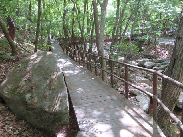 忠清南道の大田市、公州市、論山市にまたがっている山で1968年には国立公園に指定されてます、最高峰は天皇峰で845mあります、ハイキングコースがいくつかあり多くのハイカーが登っています、今回私は大田市街から約8kmの東鶴寺入口から散策路・参道を歩きました、中腹にある東鶴寺まで行きました、道沿いには飲食店街があり食事が出来ます、道の途中にはビジターセンターもありました、入山には途中のゲートで3000ウォン必要です。