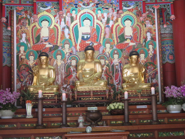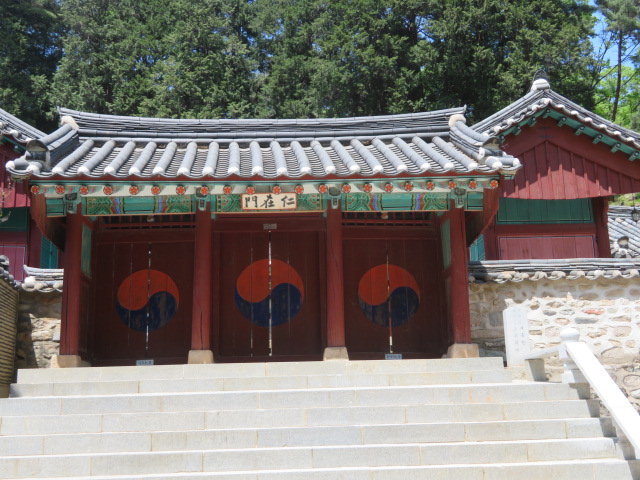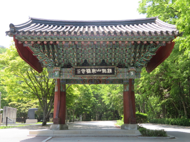 鶏龍山国立公園の公州市にあります、行くのは大田市の儒城温泉駅そばから路線バスを利用して終点から歩き易い参道・散策路を歩いて行くといいです、参拝者と登山者が歩いていました、途中に食事が出来る飲食店が並んでいました、3000ウォンの入山料を支払う場所もあります、山門をくぐると広い境内に入ります、いくつもの仏殿があります、大雄殿が大きいです、境内には多くの尼僧がいました、お土産もありました。