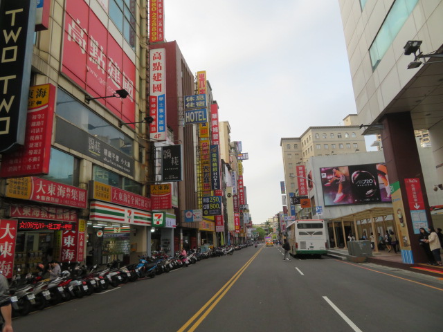 台鐵嘉義駅の駅前から北東に行く大通りです、車の通行量が多いです、駅近くには商店も老いです、駅から離れると観光客用の見所があります、駅前から20分程歩くと阿里山森林鐵路車庫園區があります、阿里山鐡道の車両の基地で蒸気機関車など見ることができます、その先ちょっと歩くと道沿いに日本家屋を復元して街並になっている檜意森活村があり、飲食店、販売店が並んでいます、ここは人が多いです、そばには阿里山鐡道の木造駅舎・北門驛もあります。