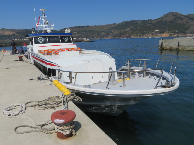 牡鹿半島沖にある金華山・黄金山神社に行く為利用する定期船です、牡鹿半島の石巻市鮎川港から約18分で金華山まで行けます、75人乗りのドリーム号で往復2500円です、ゴールデンウイークに乗りましたが本数が多いので空いてる座席がありました、基本は日曜日運行ですが行く人が多い時は本数も多くなるようです、乗船時揺れは無く快適に乗れました。
