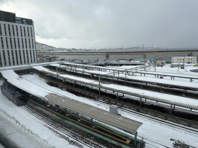 窓の開放感もあり、景色は函館駅の線路がこれでもかってくらいドーンと見えます。