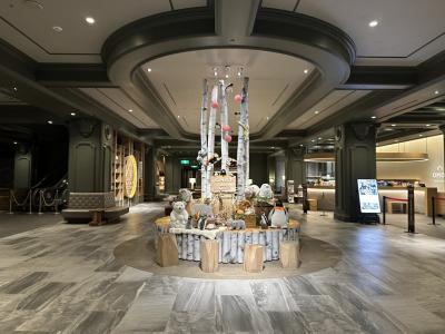ツリーのオーナメントがスタバのカップだったりフードのモチーフにしたもので可愛い。