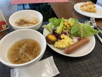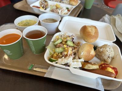朝食付きなので、ビュッフェ形式でお弁当箱のようなものに入れました。