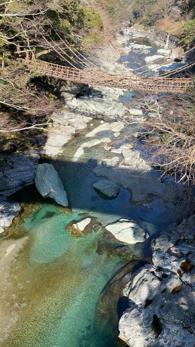 下の川は青くて景色も見ながら渡るのがベスト- 旅行時期