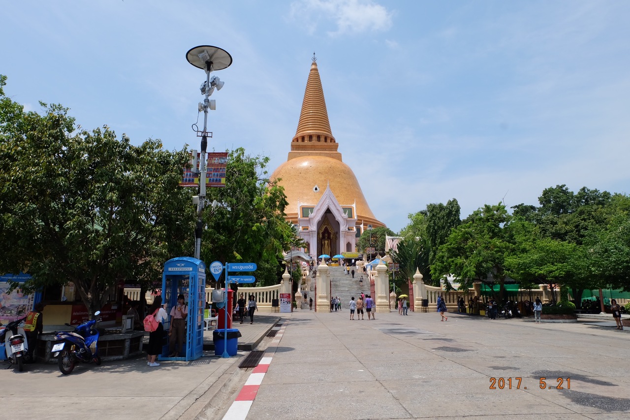 仏塔の高さとしては世界最大級らしいです。その情報通り凄く大きい塔が近く行くと見えてきます。周辺に門前町のような感じでお店が広がっていますが、規模はそこまで大きくなく田舎の駅周辺みたいでのんびりしております。