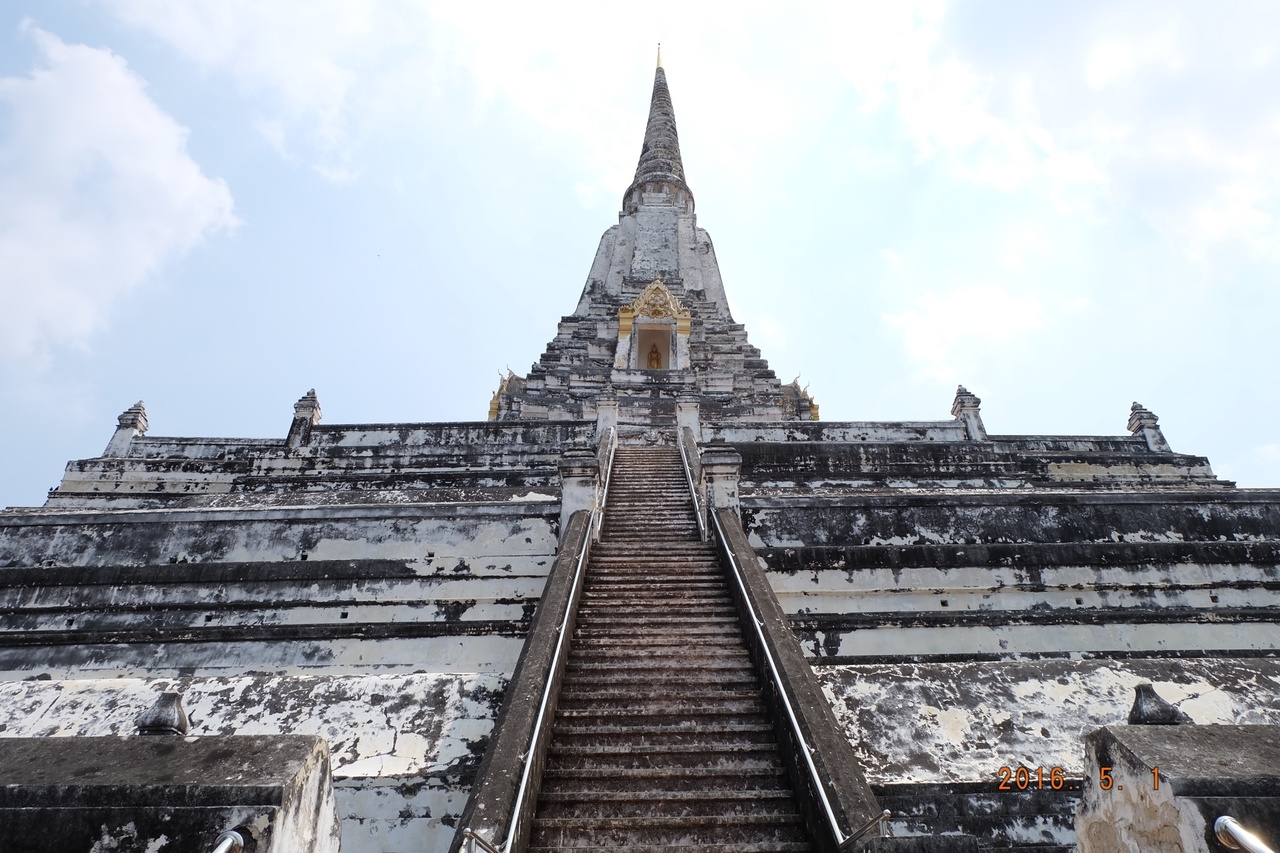 高い建物に登る階段が有名で観光客が多い。建物の上にあるのはなんと、、井戸らしい。井戸ならもっと地面に近い方が色々楽なのにと思いながら、階段登りました。でもアユタヤらしい建造物良かった!- 旅行時期