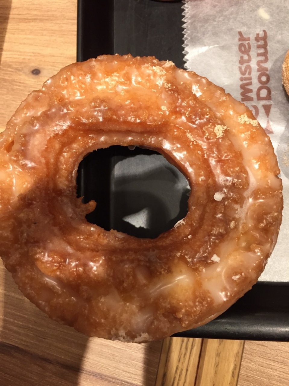 ミスタードーナツで好きな中がフワフワ外見がカリカリのドーナツいただきました。空きっ腹にとっても美味しかったです。