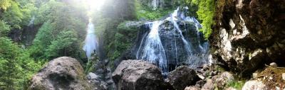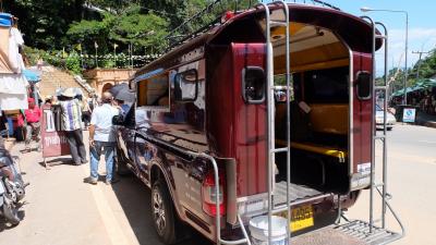 空港からタクシーで移動しました。くねくね山道をを登ること30分。階段の麓に到着。