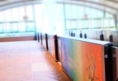 舞浜の駅を降りてからディズニーリゾートをくるくる回っている電車に乗り換えます。駅のついたところからすでにディズニーの世界に入ります。駅デザインからしてもうなんかのアトラクション路言う感じがします。デザイン◎です。