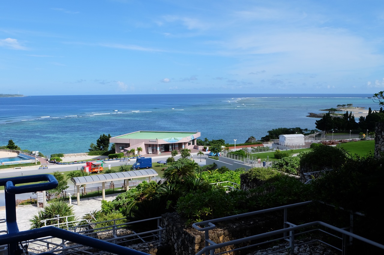 美ら海水族館から見渡せます。海洋博公園の敷地内にあり、美ら海から歩いて10分くらいのところにあります。