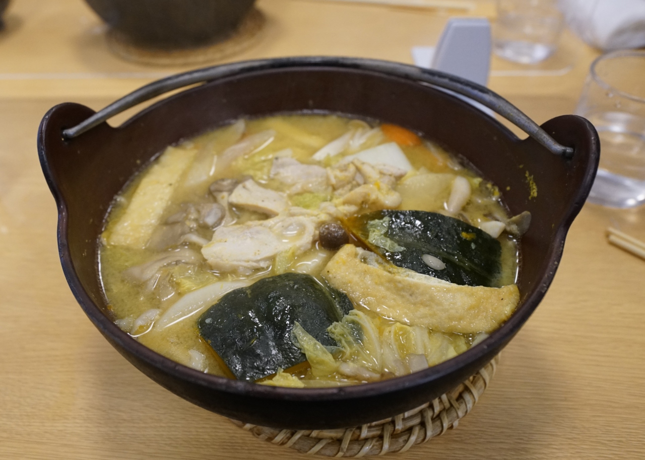 ほうとうは、豚と鶏の2種類。私は鶏肉のほうとうにしました。野菜・キノコが種類もいろいろたくさん入っていて美味しかったです。- 旅行時期